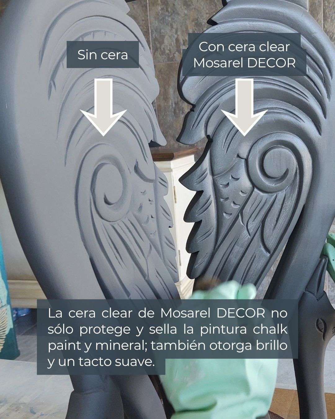 Las ceras de Mosarel DECOR son elaboradas en Holanda y formuladas con cera de abeja y carnauba “la reina de las ceras” para proteger y embellecer sus muebles. Puede usarlas sobre superficies porosas como maderas sin tratar o sobre barnices o pinturas mate. Son ideales para sellar chalk paint y pintura mineral.